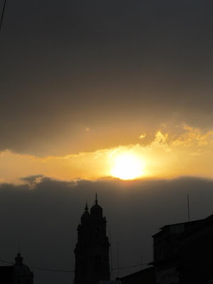 Dias de brillante sol, tardes de grisáceo firmamento y noches de luz de luna. El sol sale a jugar a las escondidas, se queda tras las nubes y se asoma por un hueco mientras la lluvia moja todos los rincones de la ciudad de cantera.